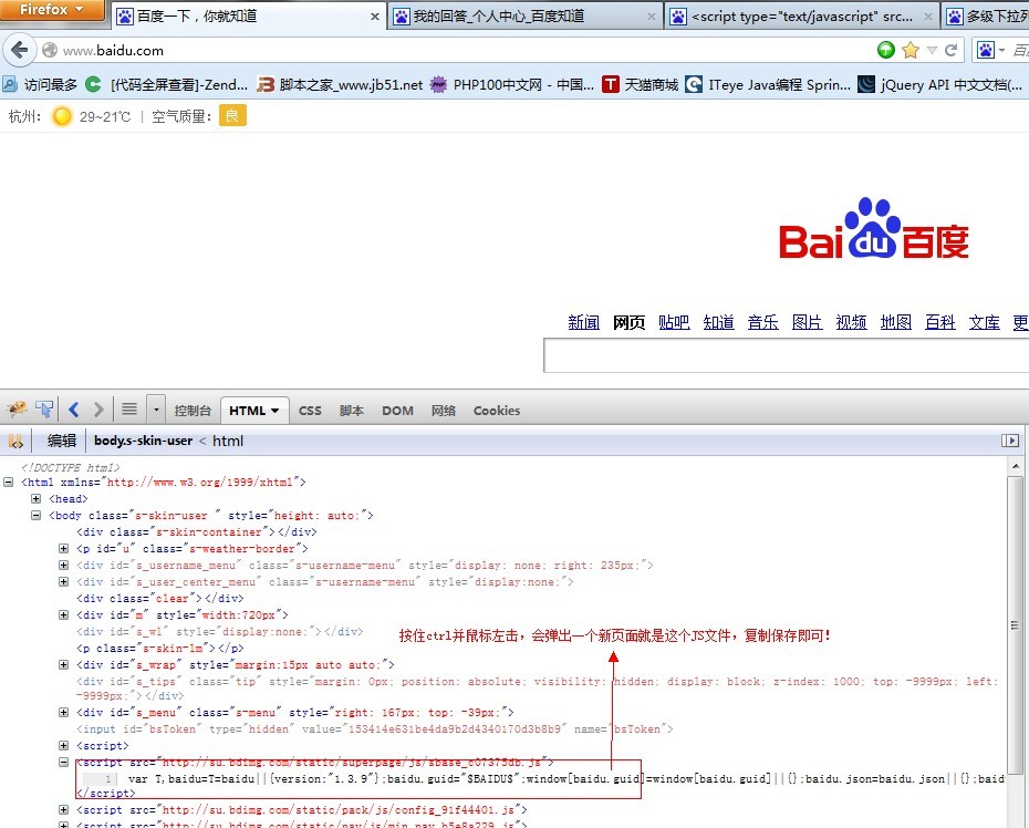 如果還是不明白,那就看下這個截圖,關于獲取百度首頁的一個JS文件實例: